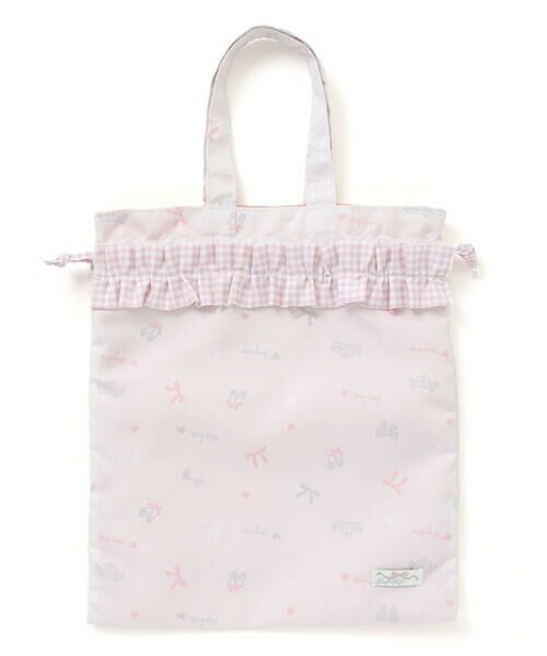 オフホワイト系・ピンク系:ティアラにリボン、バレエシューズ…女の子がキュンとときめく総柄にオフホワイト系はベージュやピンク系はピンクのチェックのフリルがガーリーで可愛い♪