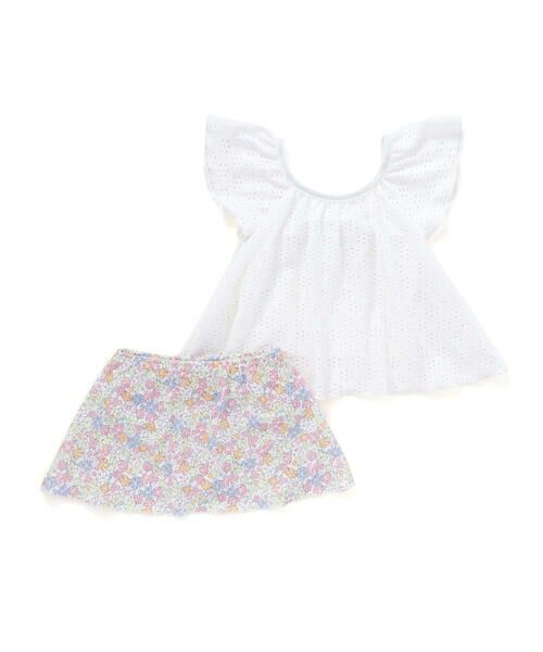 後ろにはボトムと同じ花柄を使用したリボンをほどこして後ろ姿もとってもかわいいデザイン。