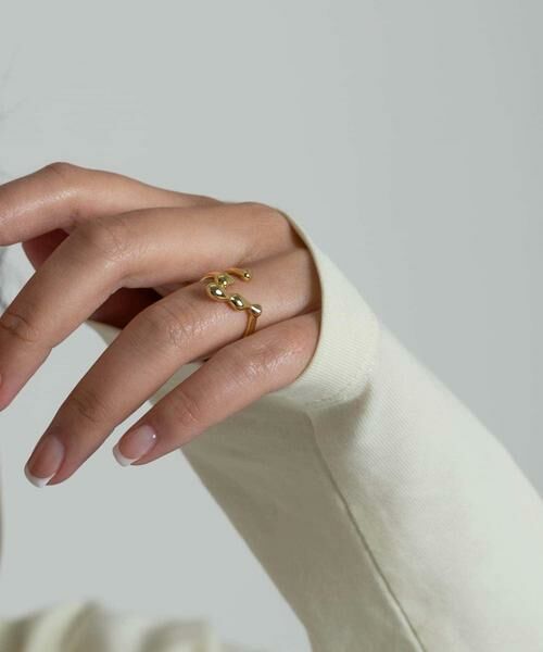 サイズ調整が可能なオープンデザインで、指にフィットする肌なじみの良い素材感と付け心地が魅力。
