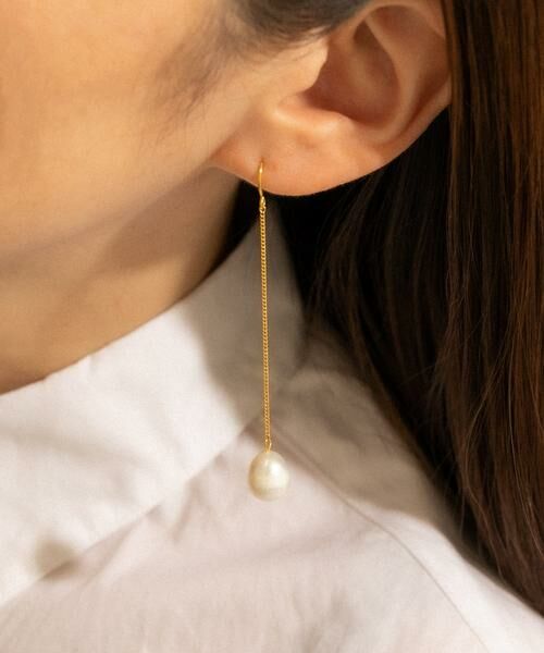 一粒淡水パールを華奢なチェーンに取り付けたシンプルなデザインのロングピアス。