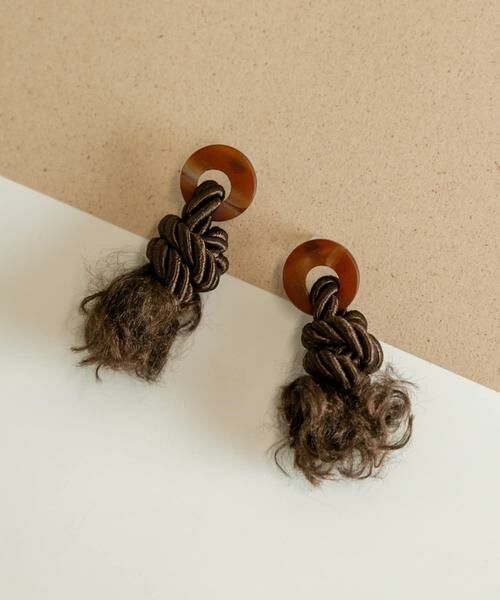 マーブル調のサークルモチーフに光沢のあるロープをあしらったピアス。
