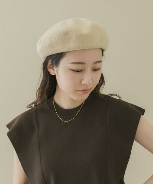 通気性の良いサーモ素材で仕立てたベレー帽。