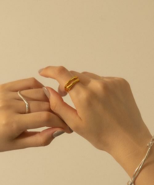 重ね付けしているような二層のディテールが手元に程よい重みを与えるリング。