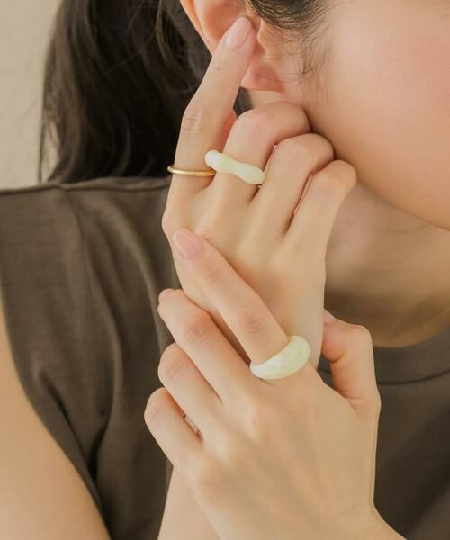 ミルキーなアイボリーカラーのニュアンスの2リングとゴールドカラーのシンプルなメタルリングの3セットアイテム。