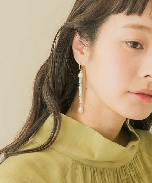 ユーモアなシルエットが特徴のミニサイズのバロックパールを繋ぎ合わせたロングデザインのピアス。
