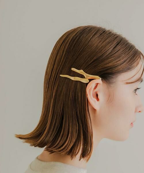 イビツなシルエットとくすみの効いたゴールドメタルがヴィンテージライクな印象のヘアピンセット。