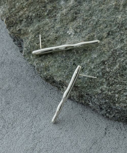 辛口なシルバーと表情のあるロングシルエットで甘さを削いだピアス。