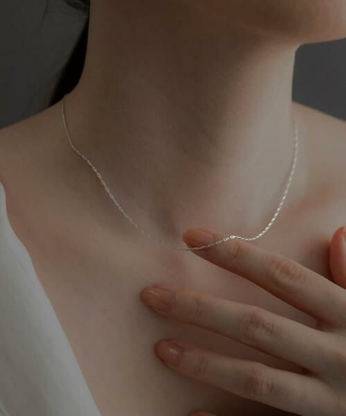 デコルテラインを美しく際立たせる上品なチェーンネックレス。