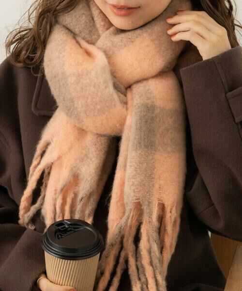 【ふわふわ素材のチェックマフラー】