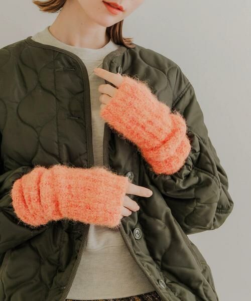 カラー糸で仕立てたふわふわ素材のアームウォーマー。