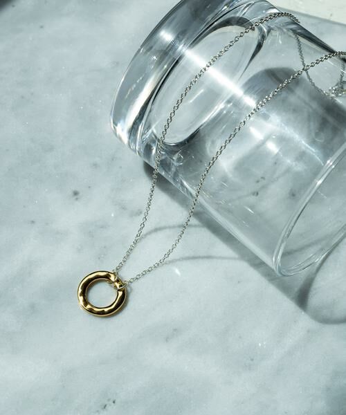 フラットなプレートデザインのリングをトップに施したショートネックレス。