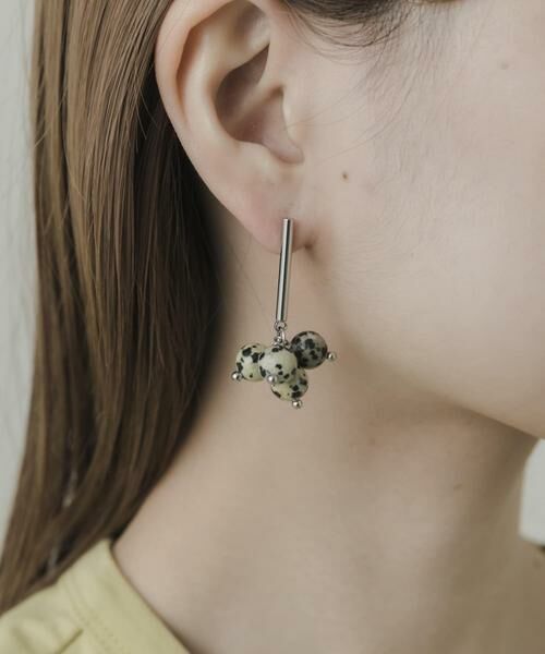 チョコチップのようなルックスのミニストーンを束ねた落ち感のあるデザインがポイントのピアス。