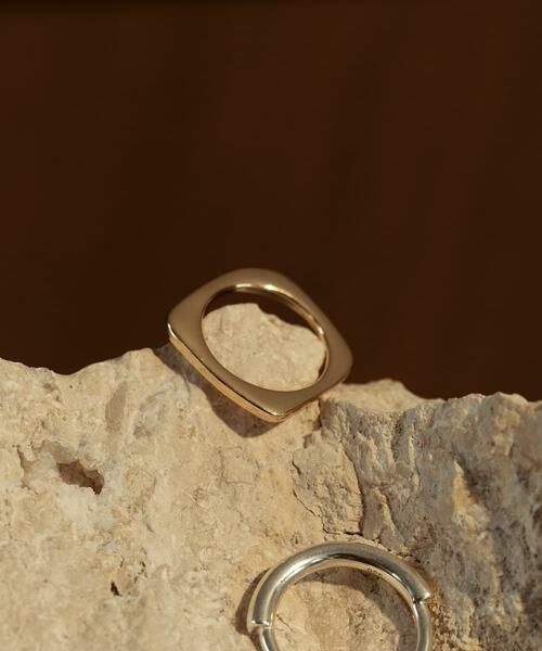 立体感のあるフラットなスクエアシルエットのあるリング。