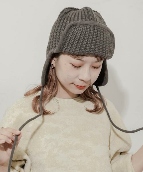 ざっくりとしたリブ編みのニットで仕立てたフライトキャップ。