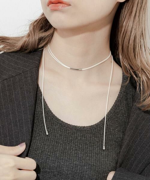 ホワイトのコードとさりげないメタルパーツの組み合わせが、繊細かつ上品なチョーカーネックレス。