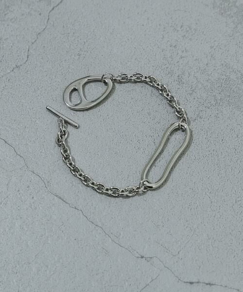 シンプルなチェーンデザインにパッと目を引くオーバル型のフレームモチーフを施したハンサムライクなブレスレット。