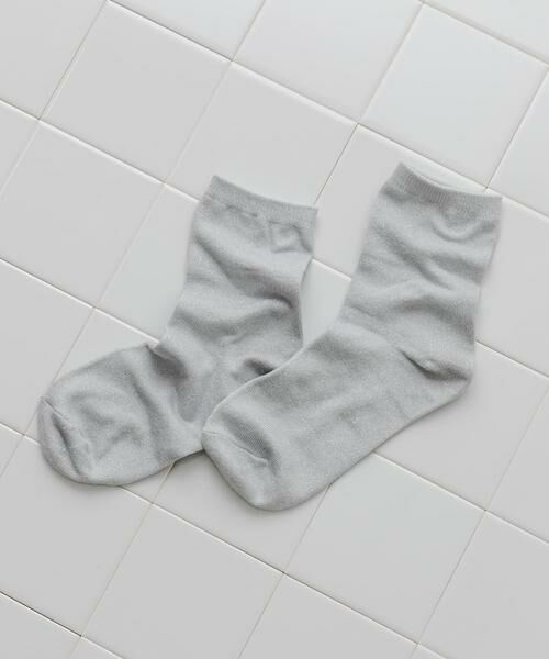 キラキラとしたラメ糸を織り込んだショートタイプのソックス。シンプルながら足元で程よい存在感を放ちます。スニーカーからバレエシューズまで、シューズを選ばないのも魅力です。