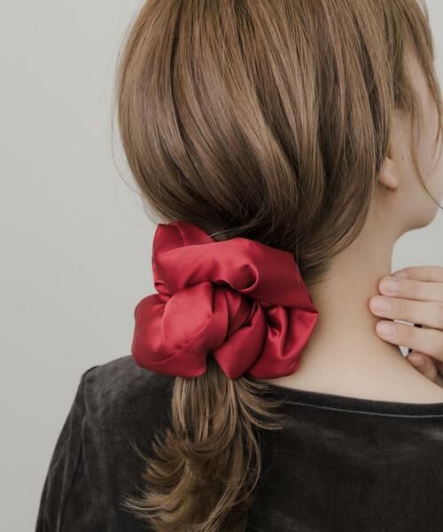 艶感のあるサテン生地で、シュシュの可愛らしさに加えて大人っぽい雰囲気もプラスした印象に。