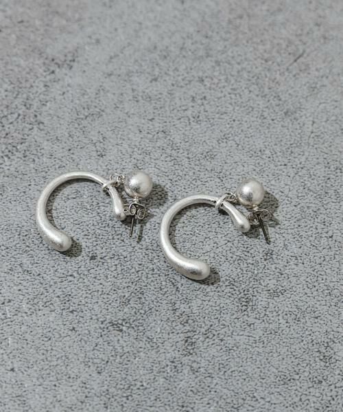 メタル素材特有の艶を抑え、くすみがかったルックスに仕立てたピアス。