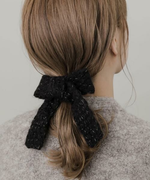 手編みのようなざっくり編みのニットが秋冬らしい、リボンモチーフのヘアカフ。