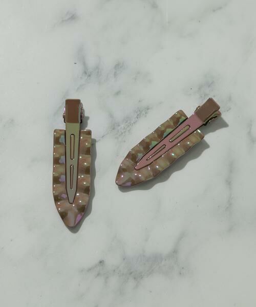 ナミナミとした特徴的なディテールにオーロラカラーのルックスがキュートなヘアピン。