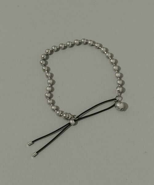 カジュアルさのあるメタルボールと落ち着いた印象のコードを組み合わせてクセのあるデザインに仕立てたブレスレット。