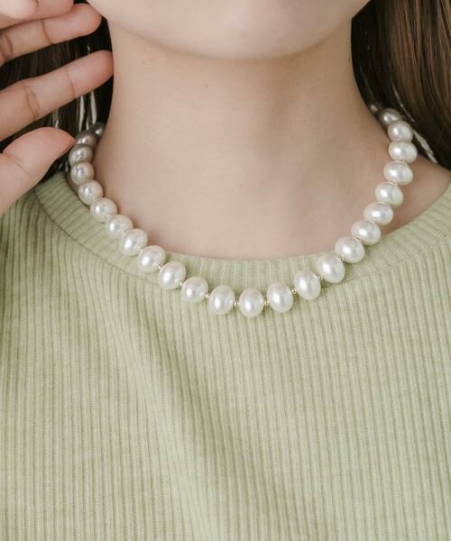 1点あると重宝するパールネックレスながら、モダンさを兼ね備えたアイテムに仕立てました。