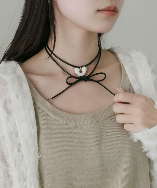 パッと目を引くホワイトカラーのハートモチーフをトップに施したコードチョーカー。