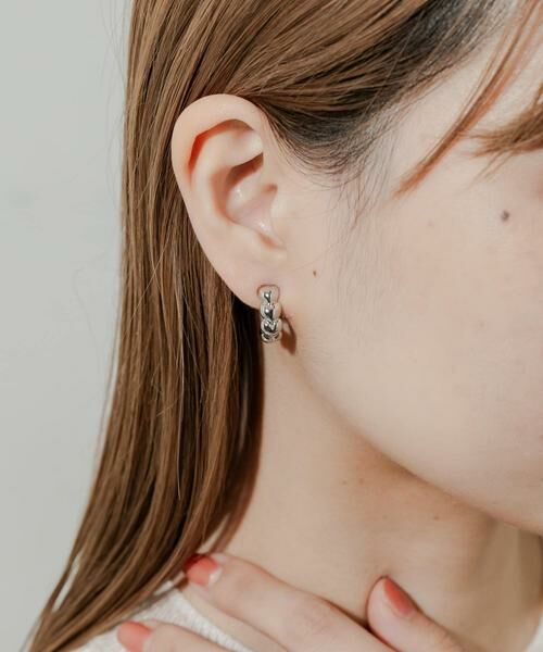 ぷっくりとした丸みのあるハートモチーフをいくつも重ね、フープ状のイヤリングに仕上げました。