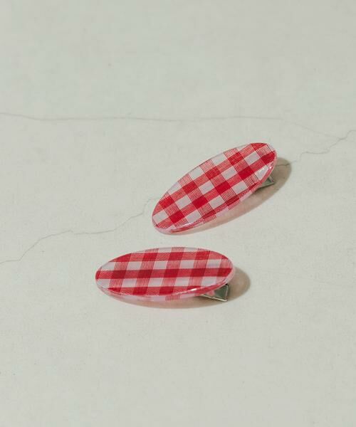 半透明な素材感とレトロムードの効いたギンガムチェック柄がキュートなヘアピンのセット。