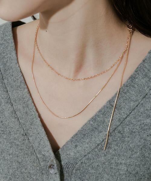 異なる種類のチェーンを組み合わせた重ね付け風のネックレス。