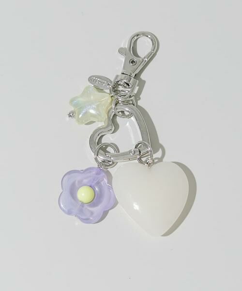 お花・ハート・星といったキュートなパーツが贅沢に連なったキーチェーン。