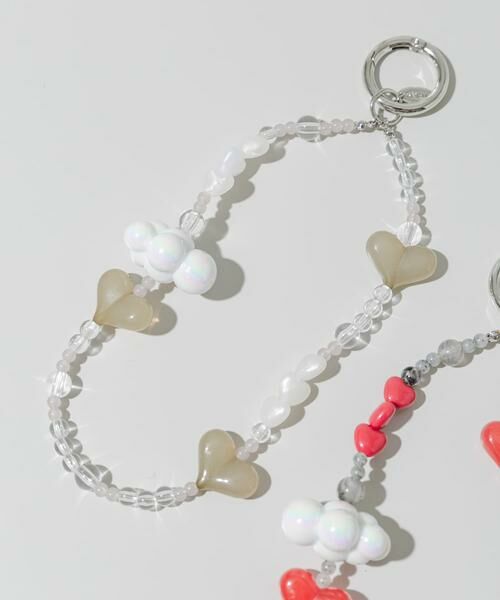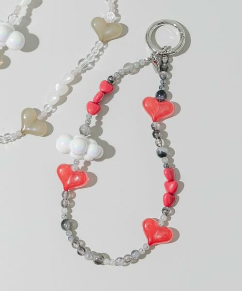 トレンドのハートモチーフに加え、もこもことしたシルエットが可愛い雲形のパーツを組み合わせたキーチェーン。