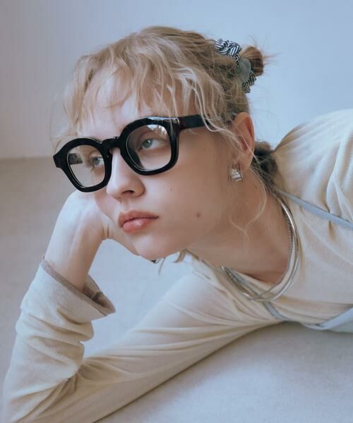 はっきりと主張する太めのフレームがキャッチーな印象のダテメガネ。