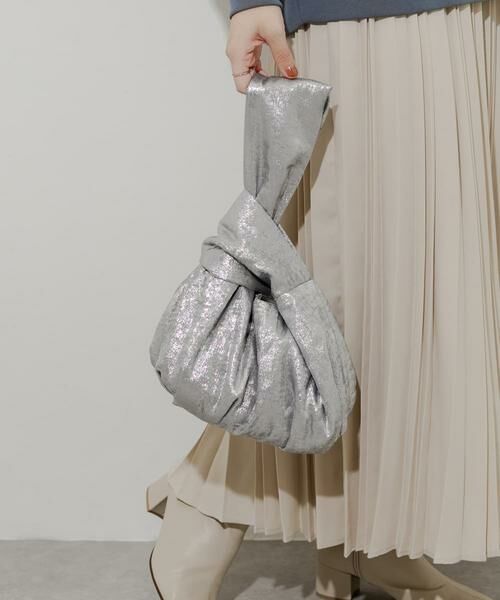 キラキラとした細かいラメがコーディネートのポイントになるメタリックバッグ。