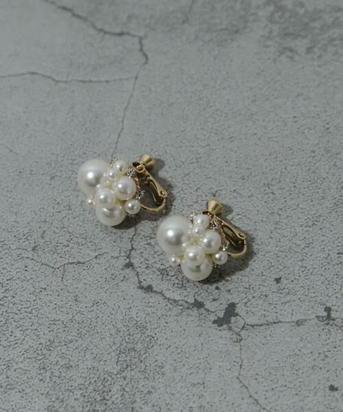 様々なサイズのパールがぎゅっと集まった、立体感あるモチーフのイヤリング。