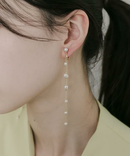 ミニパールとゴールドのチェーンが交互に組み合わさったロングイヤリング。