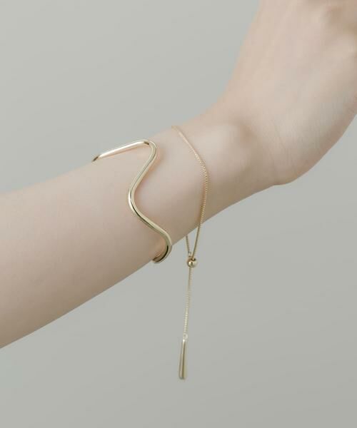 大きくウェーブしたラインが印象的なバングルと、滑らかなチェーンのシンプルなブレスレッドをセットでご用意。