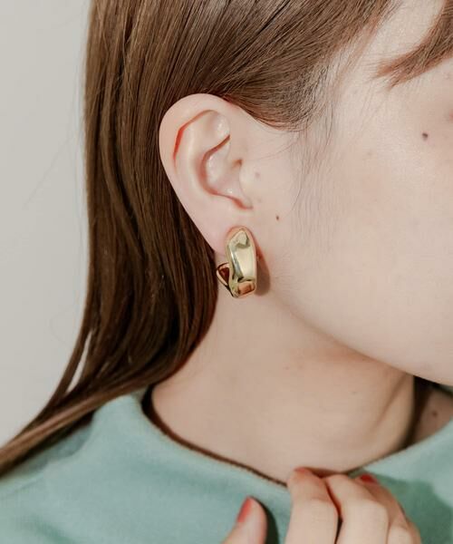 存在感のあるワイドシルエットのモチーフを採用したイヤリング。