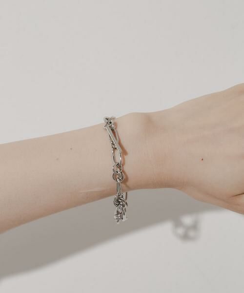 異なるサイズのパーツをランダムに組み合わせた個性的なチェーンがポイントのブレスレット。