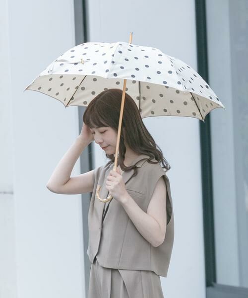 落ち着いた配色が上品なドット柄の晴雨兼用傘。