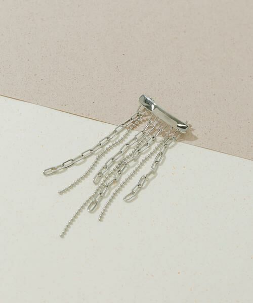 二種類のチェーンがフリンジ状に連なったデザインのブローチ。