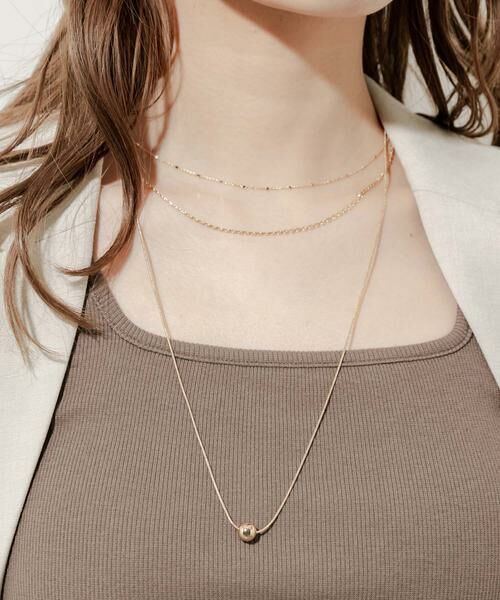 華奢なチェーンを組み合わせた二連ネックレスと、モチーフを動かして好みのバランスで使えるY字ネックレス、2点をセットでご用意。