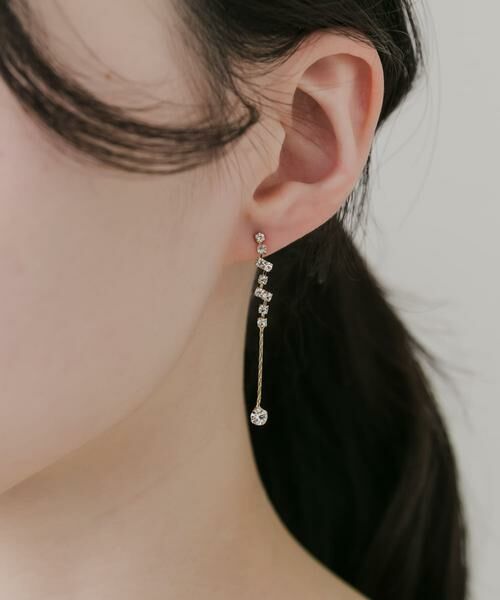 耳たぶからキラキラとしたビジューが揺れて動き、顔周りを品よく華やかにしてくれるピアス。