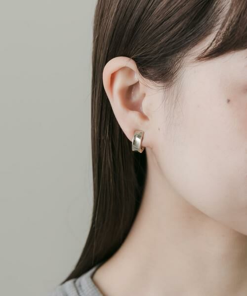 メタルプレートがフープ状になったシンプルなイヤリング。