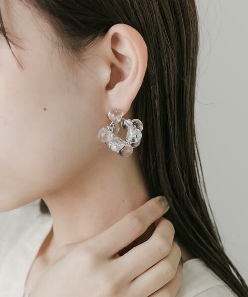 クリアボールがフープ状に連なった夏らしい雰囲気のピアス。