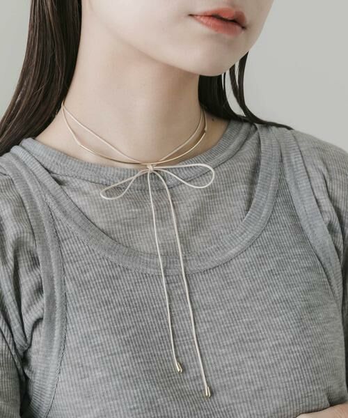 コード部分の結び方次第で雰囲気が変わるので、トップスのデザインやコーディネートのテイストに合わせて好みの仕上がりにしていただけます。