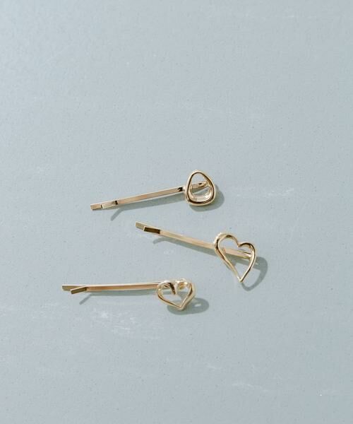 ミニサイズのハートモチーフがワンポイントになったヘアピンを3点セットでご用意。