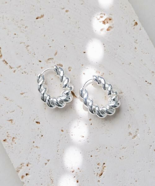 ロープのようにツイストしたメタルモチーフが特徴のピアス。