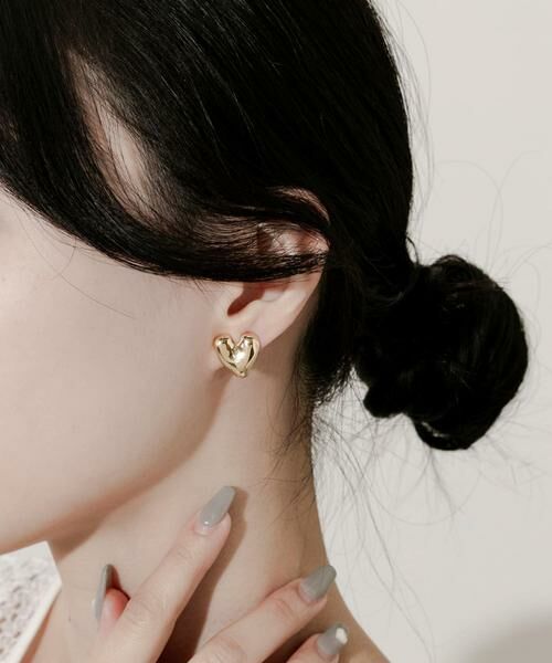 ややいびつなシルエットが愛らしい、ミニサイズのハートイヤリング。